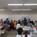 オカリナの吹き方指導 → 色つけ → ニス塗り → ミニコンサート